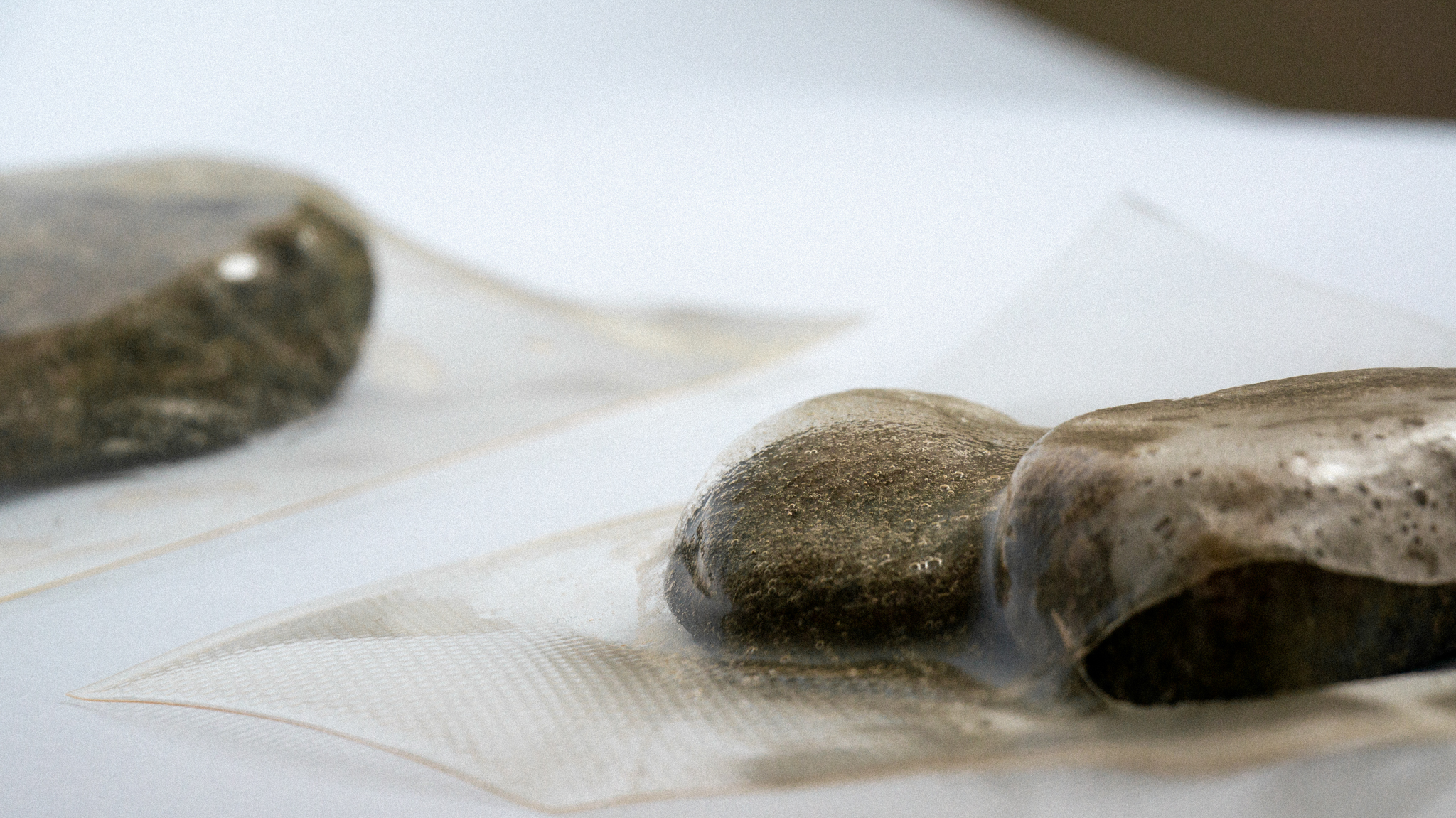 I vacuum-formed stones from the local rivers. This centralises the focus on the technique and the
