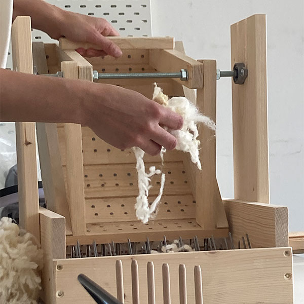 During the summer term (MAR—JUL) 2024, I attended a course called ”Design Experiments with Wool” as a guest lecture at Pforzheim University of Design. Here, we investigated the potential of local wool as a resource in different fields, e.g., footwear, architecture, and art. During this project, I got to set up two looms with the wonderful textile designer Esther van Schuylenbergh. We learned about the whole process, from beginning to end, about her way of creating patterns and some history behind weaving.