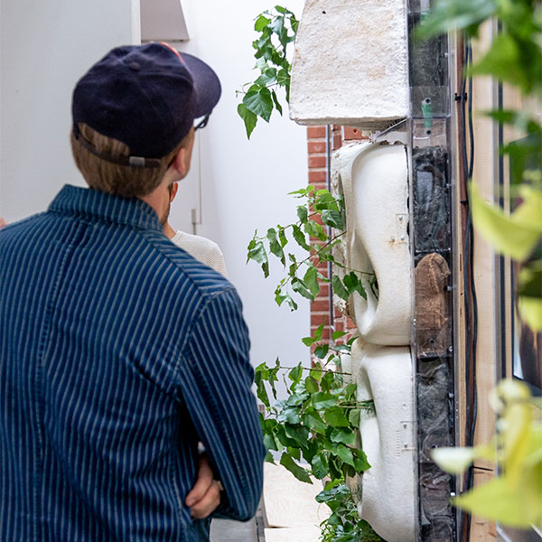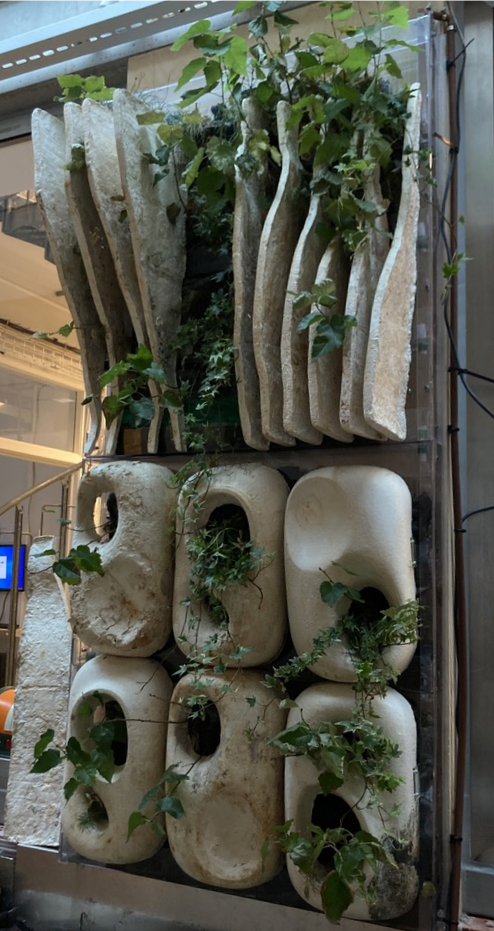 The living mycelium objects were installed on the plant wall of Umeå University‘s Art Campus, along with boreal saplings grown by students from the School for Forest Management, Skinnskatteberg—MAY 2023