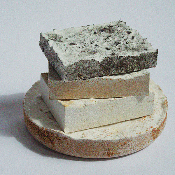 and inspired by the branching root structure of mycelium. By mixing spores, wood