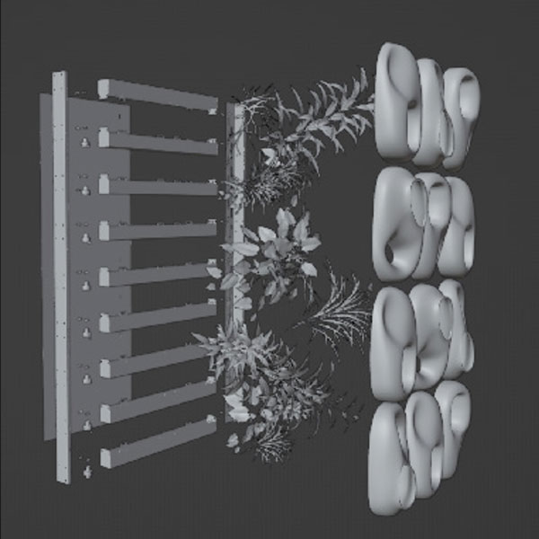 The resulting panels form a “grid of growth”, connecting the horizontal trays